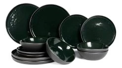 Dit servies van Cosy & Trendy uit de Laguna Verde collectie zal een leuke toevoeging zijn aan jouw keuken. Ook is het te combineren met ander servies uit de Laguna serie. Het bord heeft een leuke, donker groene look en heeft een diameter van 27 cm. Verras je gasten met de Cosy & Trendy Laguna Verde. Het servies heeft een ongebruikelijke textuur en vorm. Het is namelijk voorzien van golvend reliëf en organische rand.
