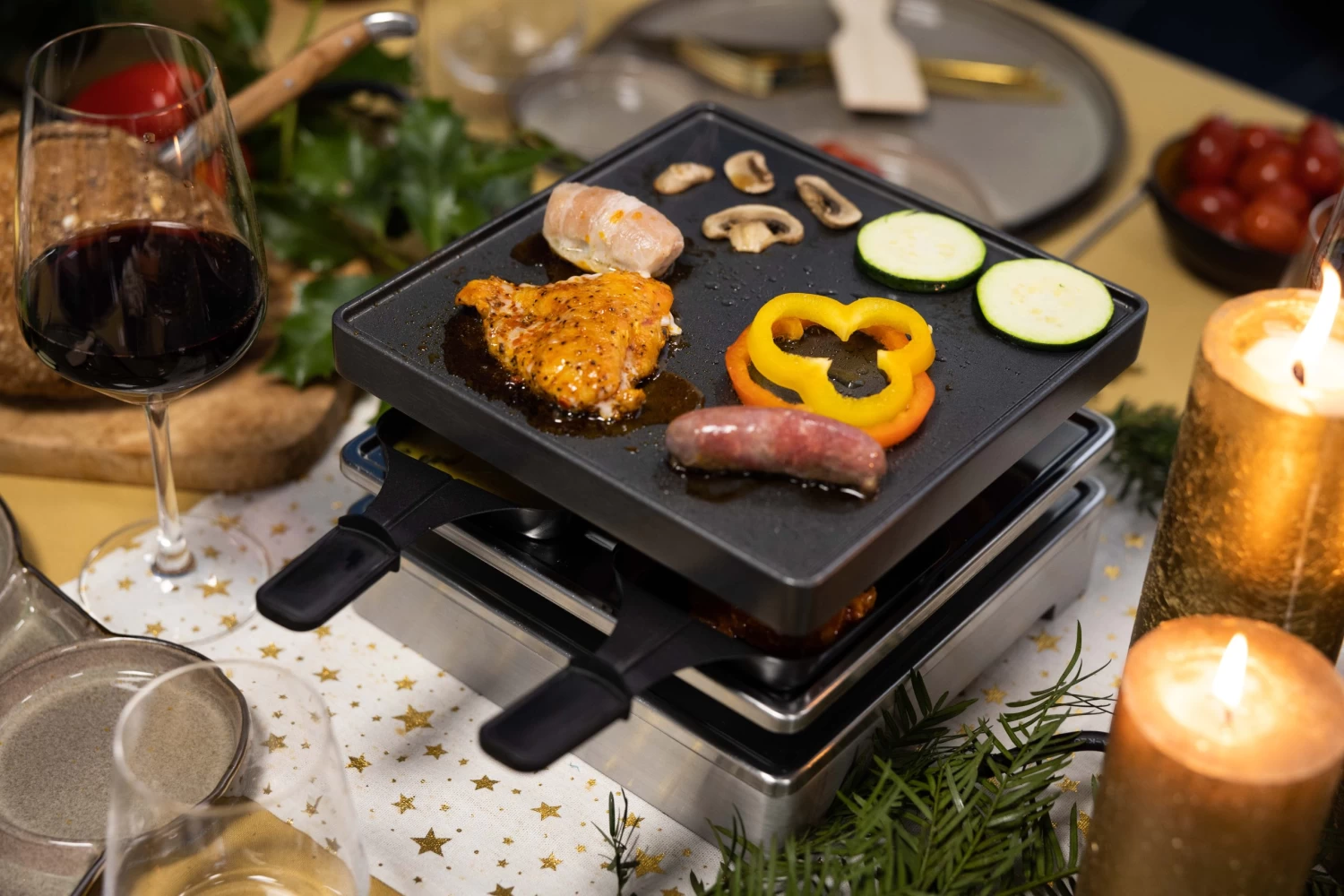 Gourmetten draait om een samenkomst van mensen in combinatie met lekkere gerechtjes! Het Espressions gourmetstel Square 21 x 13 cm is gemaakt van RVS. Het gourmetstel beschikt over een afneembare bakplaat met anti-aanbaklaag. Hierdoor is de bakplaat gemakkelijk schoon te maken. Het gourmetstel is geschikt voor 4 personen en wordt geleverd met 4 pannetjes en 4 spatels. Met deze pannetjes kun je ‘racletten’: van bovenaf verwarmen. Is je gezelschap groter? Dankzij het meegeleverde koppelsnoer kun je twee gourmetstellen aan elkaar koppelen!
