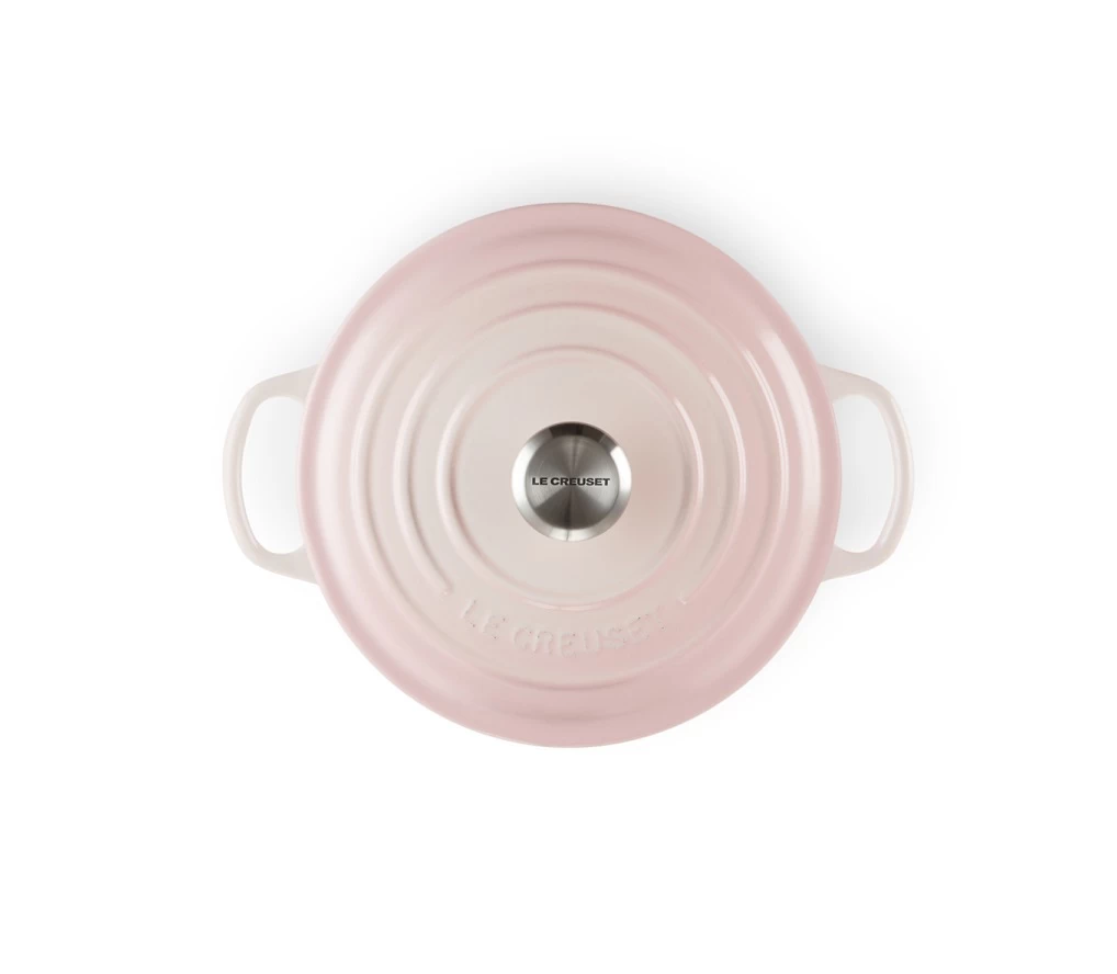 Met deze Le Creuset Braadpan Signature in de kleur shell pink haal jij een echte eyecatcher in huis. De braadpan heeft een diameter van 24 centimeter en een inhoud van 4.2 liter, dit maakt hem geschikt voor 4 à 5 personen. De pan is vervaardigd uit geëmailleerd gietijzer wat de warmte vasthoud, zodat het eten gelijkmatig kan bakken en bruinen. Deze braadpan is vrijwel geschikt voor alles, maar staat vooral bekend om verschillende soorten steak en vis in te braden. Deze pannen kunnen namelijk heter worden dan pannen met een antiaanbaklaag.