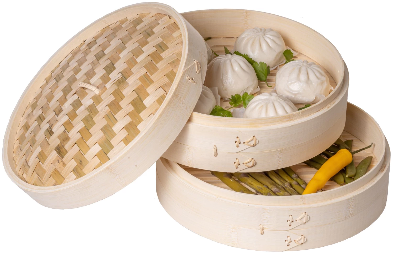Graag je eten op een praktische manier stomen? Dan is de Cookinglife Stoommand Bamboe ø 30 cm perfect voor jou! Deze stoommand heeft een originele look. Doordat het eten niet in aanraking komt met olie of water, behoudt het zijn voedingsstoffen en wordt er geen onnodig vet aan je maaltijd toegevoegd. Stomen is dus een supergezonde bereidingswijze! De hoogte van 1 mandje is 4 cm.