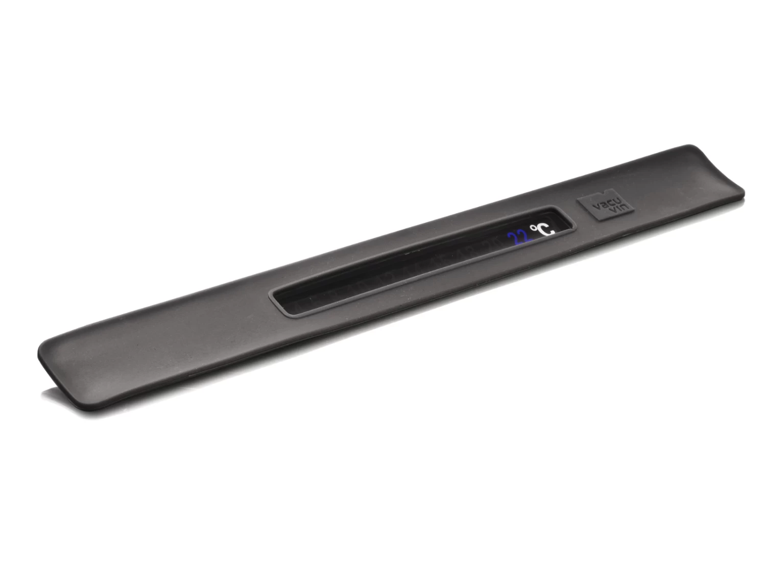 De Vacu Vin Wijnthermometer meet de temperatuur van alle soorten wijnflessen. De wijnthermometer is om de fles heen te wikkelen en de display laat de temperatuur van de fles zien. Aan de achterkant van de thermometer staan adviserende temperaturen voor verschillende wijnen. De wijnthermometer is eenvoudig in gebruik en heeft een compact design, waardoor het gemakkelijk mee te nemen is.