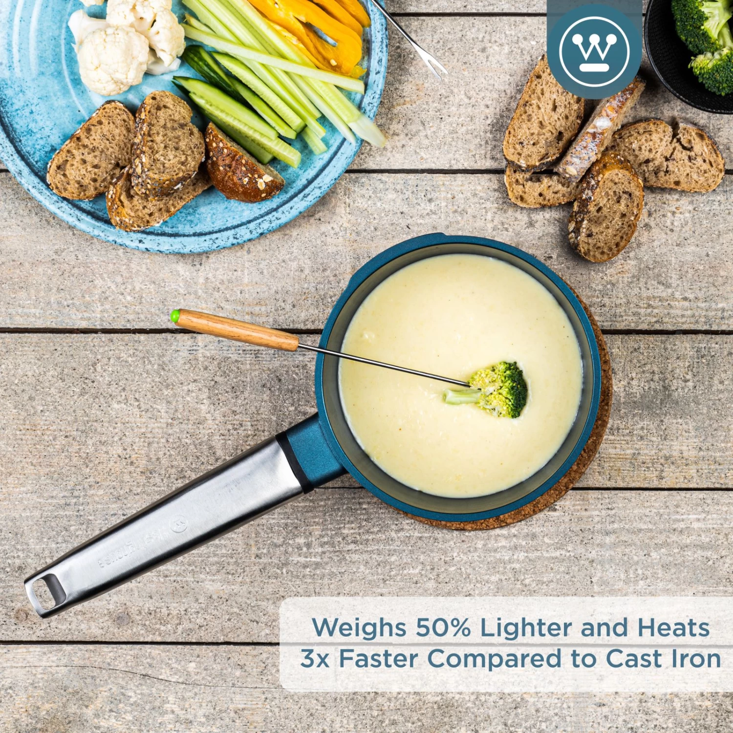 De Westinghouse Performance pannen zijn gemaakt van gegoten aluminium, waardoor ze veel lichter zijn dan de pannen van gietijzer. Hierdoor worden deze pannen drie keer zo snel warm als gietijzeren pannen en zijn ze veel makkelijker te verplaatsen van kast naar fornuis. Daarnaast zijn de pannen geschikt voor alle fornuizen en ovens!