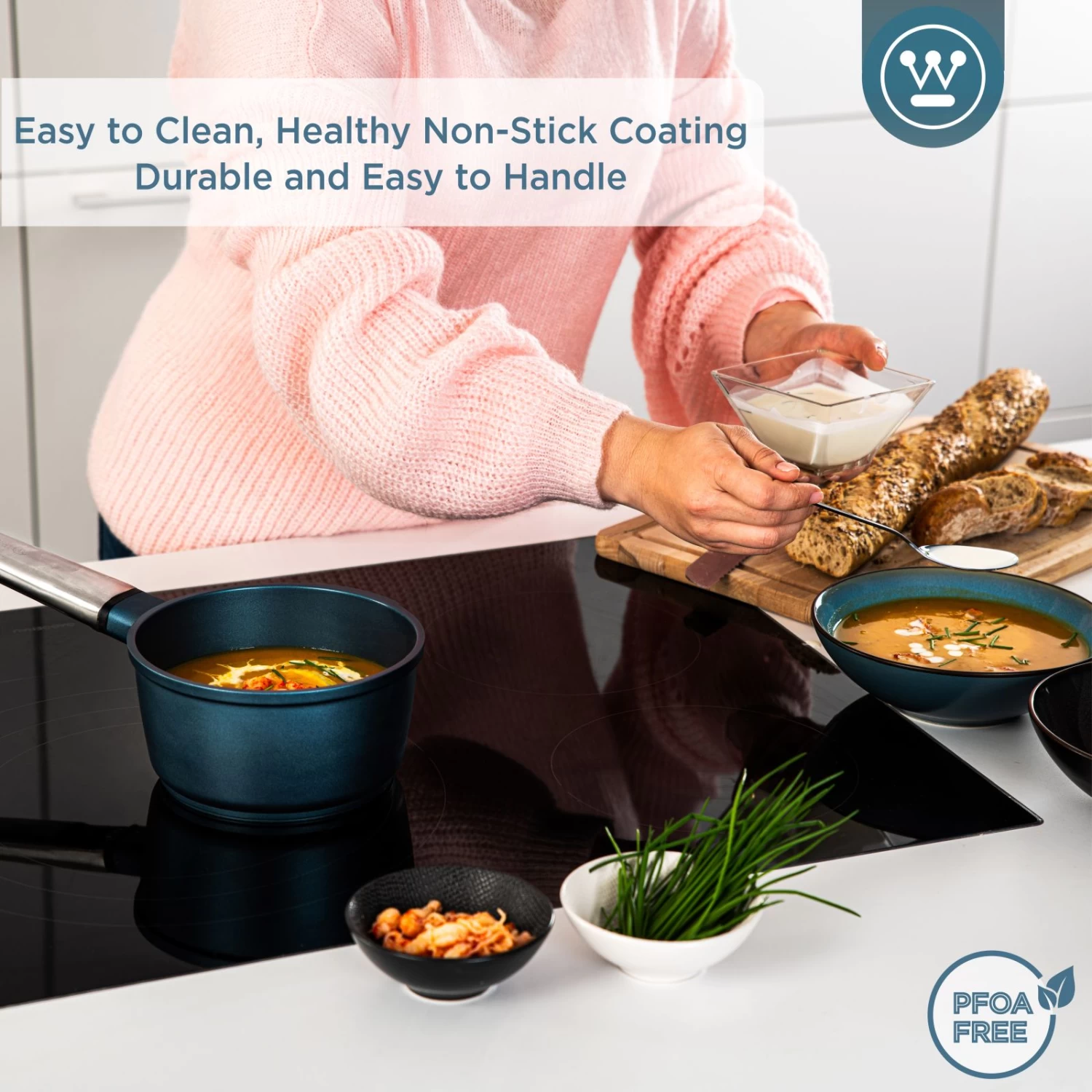 Koken en bakken moet niet alleen leuk en smakelijk zijn, het moet ook veilig gebeuren. De pannen van Westinghouse zijn van hoogwaardige kwaliteit. Deze pannen van de Westinghouse Performance collectie zijn lichtgewicht, hebben een uitstekende warmtegeleiding, bevatten een antiaanbaklaag die PFOA- en PTFE-vrij is en zijn makkelijk schoon te maken in de vaatwasser.