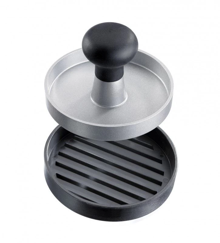 Handig hamburgerpersje waarmee je makkelijk je eigen hamburgers kunt maken zoals je zelf wilt. De pers maakt groeven in de hamburger voor die echte burgerlook! Vet de boven- en onderkant in met wat olie en voeg het vlees toe. Druk zachtjes aan en klaar! Na gebruik kun je het hamburgerpersje makkelijk schoonmaken in de vaatwasser.